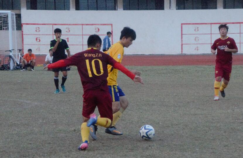 在第一场与政法的比赛中,我院球员表现出无比的热情和精湛的技术,每一球都直逼对方球门。那颗足球就像一个调皮的小孩,在双方球门间跑来跑去。一场热身过后,上半场比分以0比0持平。球场上,队长声嘶力竭地指挥队员,各球员默契配合,最终在下半场我院球队以“点四进四”完胜政法球队的“点四进二”。