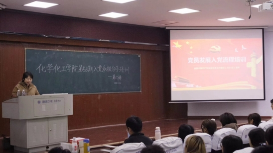 12月2日下午,化学化工学院分党校于六号教学楼学术报告厅举行第五十三期入党积极分子培训班开班仪式暨第一次专题党课。本次开班仪式由学生一支部书记贺青主持,72名入党积极分子参加。