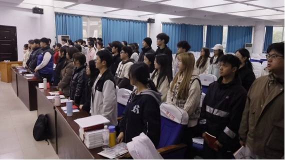 仪式在庄严的国歌声中拉开序幕。贺青首先宣读了本期培训班的学员守则及相关管理规定。随后,学员代表黄雨晗结合个人学习与成长经历,分享了向党组织靠拢的真切感悟,并号召全体学员以党员标准严格要求自己,在学业、品德、实践等方面全面提升,以实际行动践行新时代青年的责任与担当。