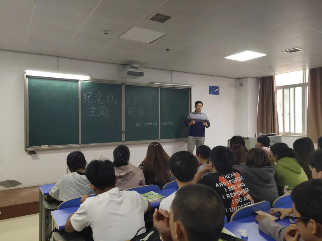 10月28日下午,19级应化一、二班于12110教室召开以“纪念抗美援朝”为主题的班级导师见面会。本次会议有教务处张超出席,19级辅导员助理罗玉娇主持会议,19级应化一、二班全体同学与会。