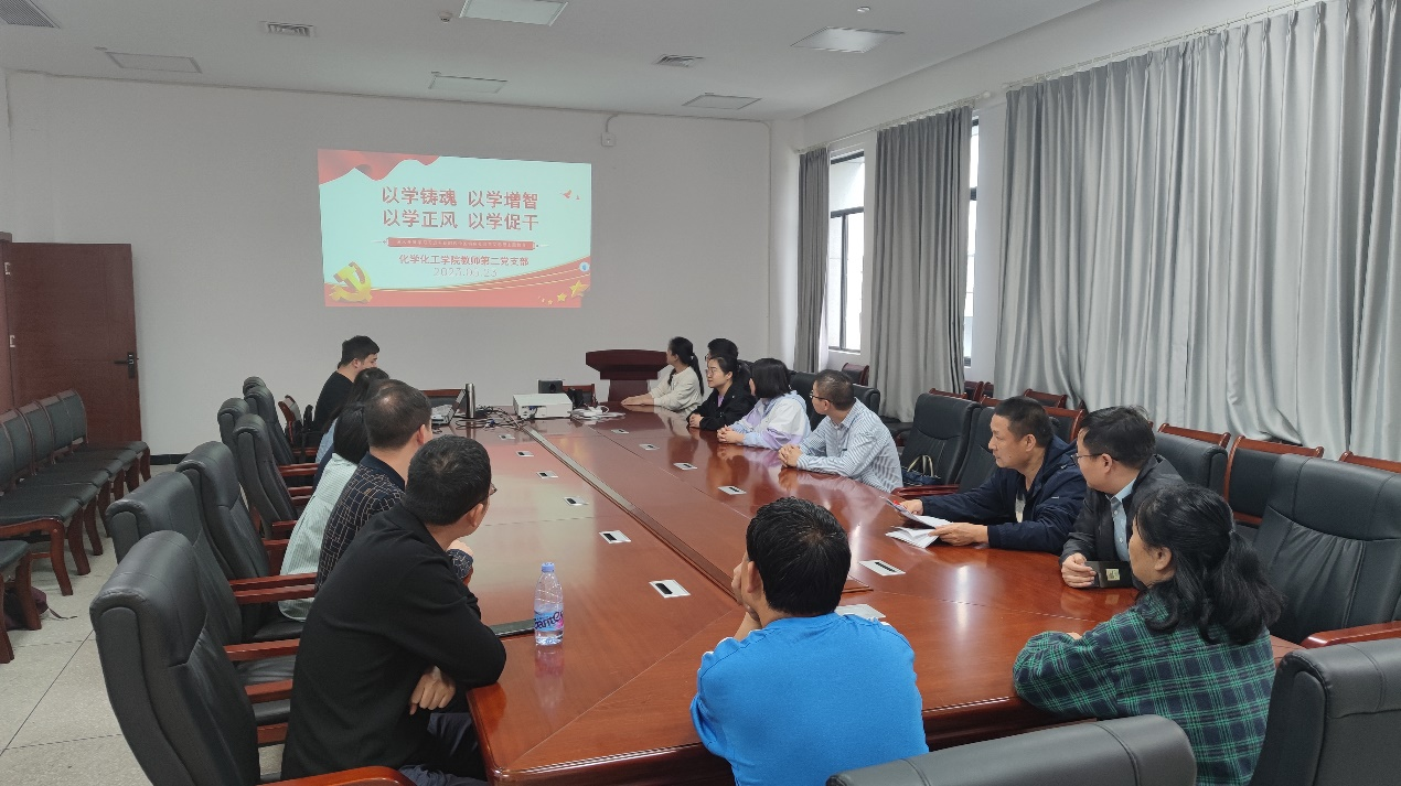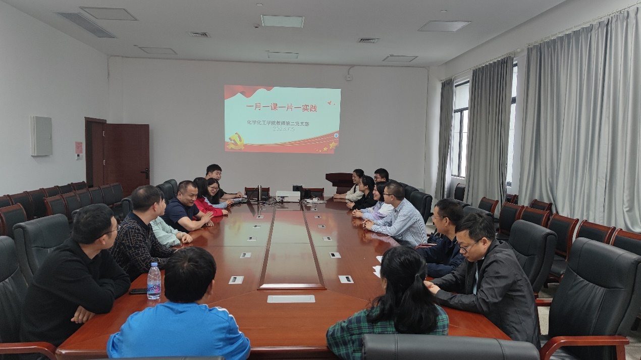 化学化工学院教师第二党支部为深入学习贯彻习近平新时代中国特色社会主义思想,全面贯彻落实党的二十大精神,进一步落实上级党组织关于开展“一月一课一片实践”活动的要求,于5月23日在18510开展支部委员讲“微党课”、全体党员观看爱国主义影片的活动。本次活动由支部书记曹帆主持,支部全体党员参会。