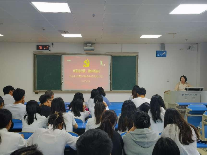 观影后,陈涉以“行知以致远,扬帆建新功”为题,为毕业生讲授党课。她提醒同学们牢记党员的身份和义务,发挥先锋模范作用:“一名党员就是一面旗帜,在校时你们是旗帜,毕业后更要充当旗帜。”她提醒同学们在实践中学习感悟习近平新时代中国特色社会主义思想,希望同学们毕业后发挥专业特长,加强党性修养,心怀梦想,自强不息,将个人发展与国家前途命运结合起来。她向各位毕业生党员表达了祝福和期许,希望大家站好最后一班岗,协助老师做好毕业生文明离校工作。最后,与会老师向毕业生党员赠送了“信仰礼包”,表达了母校的深情厚谊。