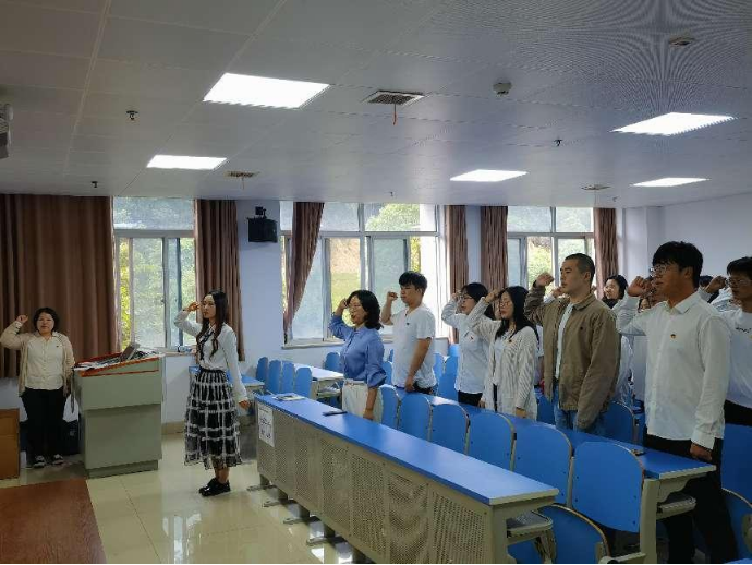 活动在庄严的国歌声中拉开帷幕。接下来,王雨晴带领全体毕业生党员重温入党誓词,忆初心、强党性;贺青向毕业生党员强调了及时转接党团关系的重要性。之后,全体师生党员共同观看了主题教育影片《充满光荣和梦想的远征》,了解了党的十八大以来国家对乡村教育、脱贫攻坚和发展职业教育所做的大量工作,也思考了个人将怎样以实际行动投入到中华民族伟大复兴的事业中来。