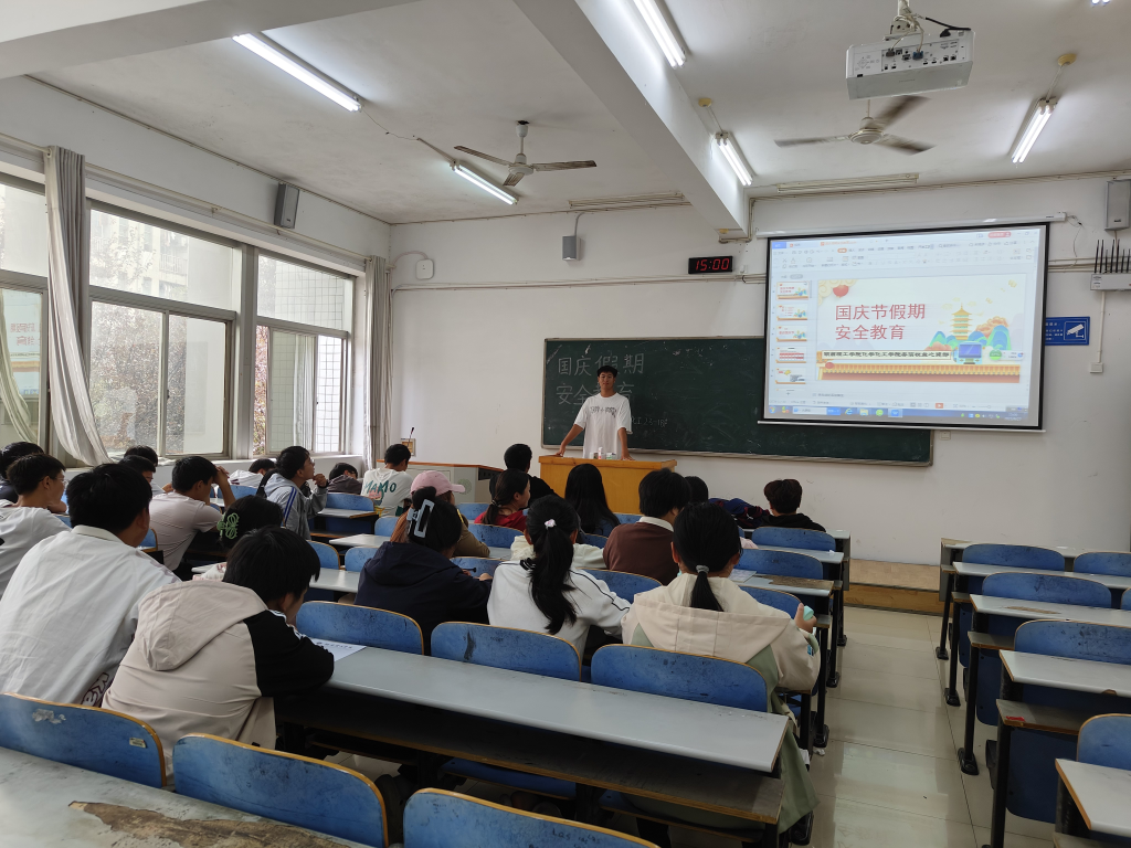 9月26至27日,化学化工学院23级各班于班级自习室开展国庆节假期安全教育主题班会。本次班会由安信部组织,各班安信委员带领学生进行学习。