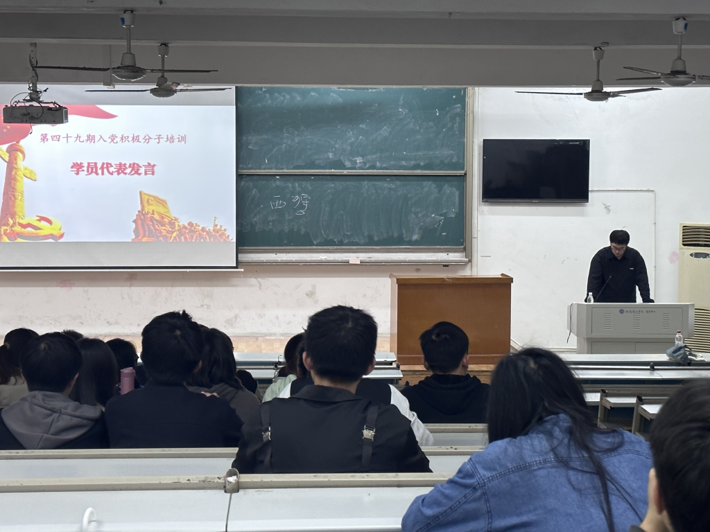 来自22级的索天翼代表全体学员进行发言。他首先对学校给予在座同学这一向党组织靠拢的宝贵机会表示了感谢,随后他自述想要入党是因受到优秀党员的耳濡目染,并且在生活中许多地方都受到了党员同志的关切与爱护。他希望在座同学通过本次学习能够有所收获,以饱满的热情迎难而上,为党的事业贡献自己的力量。