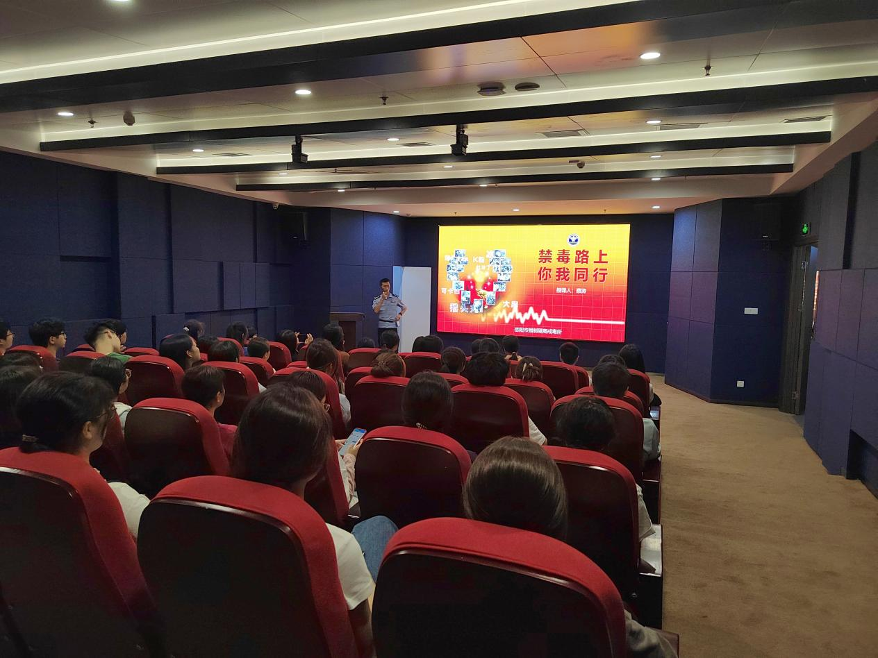 演播厅中,戒毒所工作人员向学生教授禁毒知识,帮助学生了解毒品种类、学习科学辨识毒品,戒毒所的工作人员向学生们拉响警钟,毒品种类层出不穷,禁毒离我们并不遥远,要时刻保持警惕。