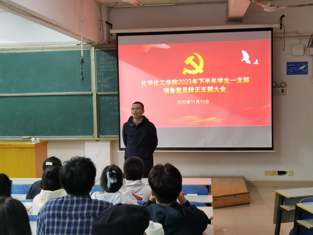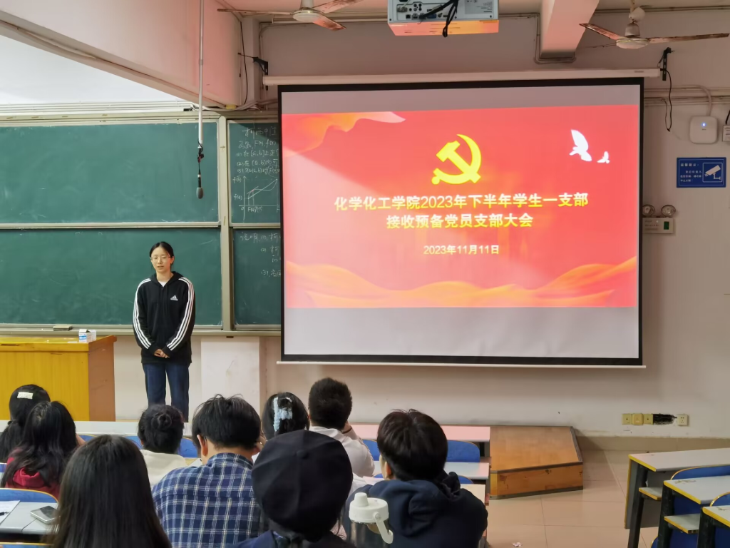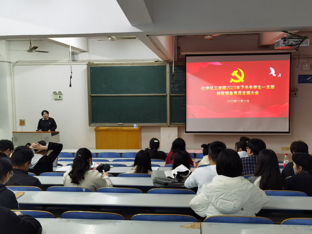 2023年11月11日下午18:30,化学化工学院学生一支部于15208教室召开支部大会,大会由学生一党支部支部书记贺青主持,学生一支部全体党员和发展对象与会。