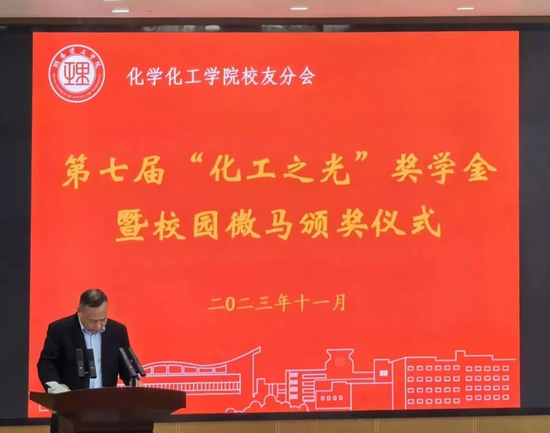11月18日下午,化工学院校友分会第七届“化工之光”奖学金暨校园微马颁奖仪式于17号楼学术报告厅隆重举行