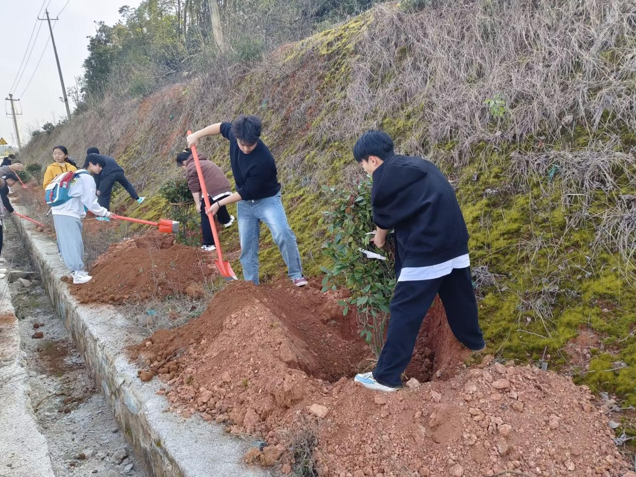化学化工学院积极响应本次活动的号召,同学们纷纷热情参与活动。在专业人员的讲解和指导下,大家分工明确,有的挖坑,有的培土。经过了一上午的努力,一排排整齐的小树苗迎风挺立,为郭镇乡增添了新的生机。