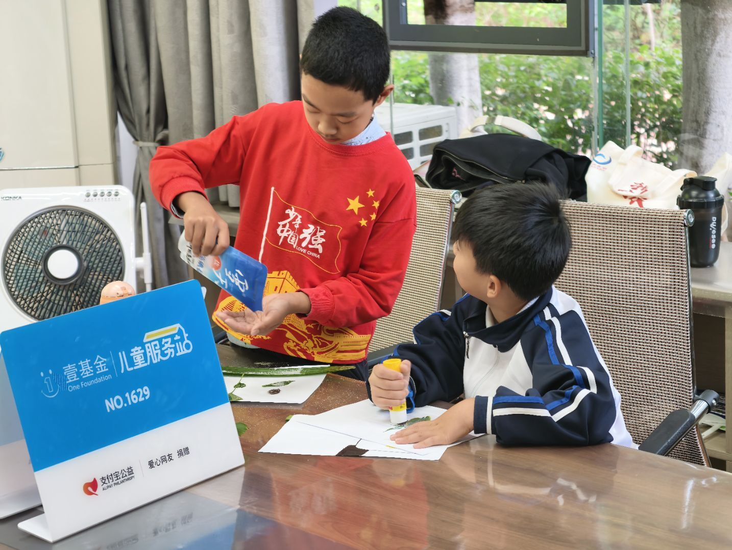 随后,志愿者带领孩子们走进社区公园采集落叶,枫叶、银杏叶、梧桐叶等形态各异的叶片成为天然素材。在创作环节,志愿者指导孩子们拼贴构图,用胶水固定叶片,再通过涂胶撒盐的巧思模拟霜降景象,一幅幅充满童趣的霜降树叶画逐渐成型。