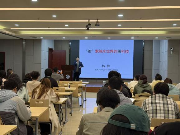 2025年10月27日上午10点30分,温州大学化学与材料工程学院院长杨植教授以“‘碳’索纳米世界的黑科技”为题在图书馆一楼多功能厅为我院师生作学术报告。本次报告会由我院副院长刘宇主持,化学化工学院部分教师出席,全体研究生参会。