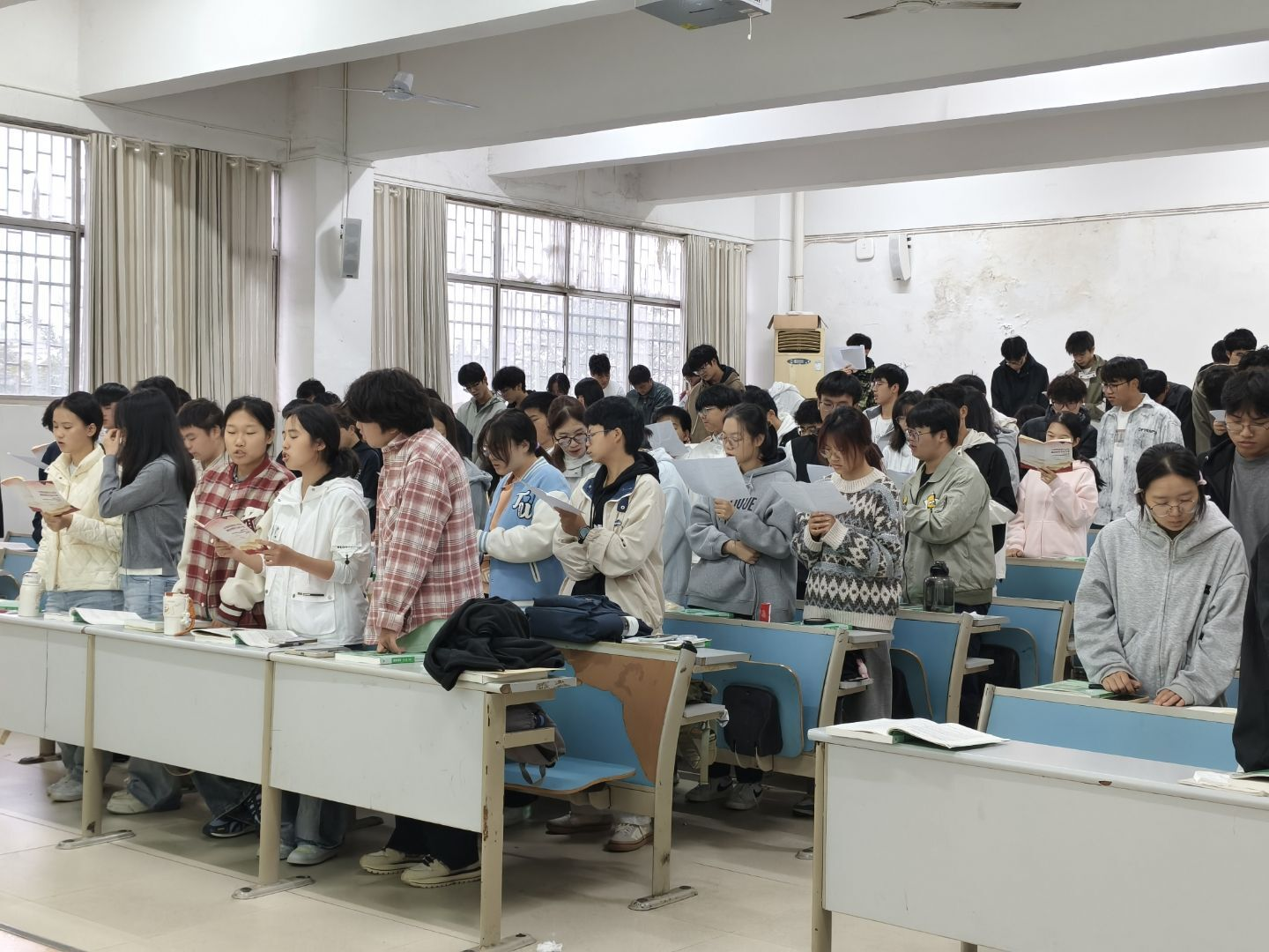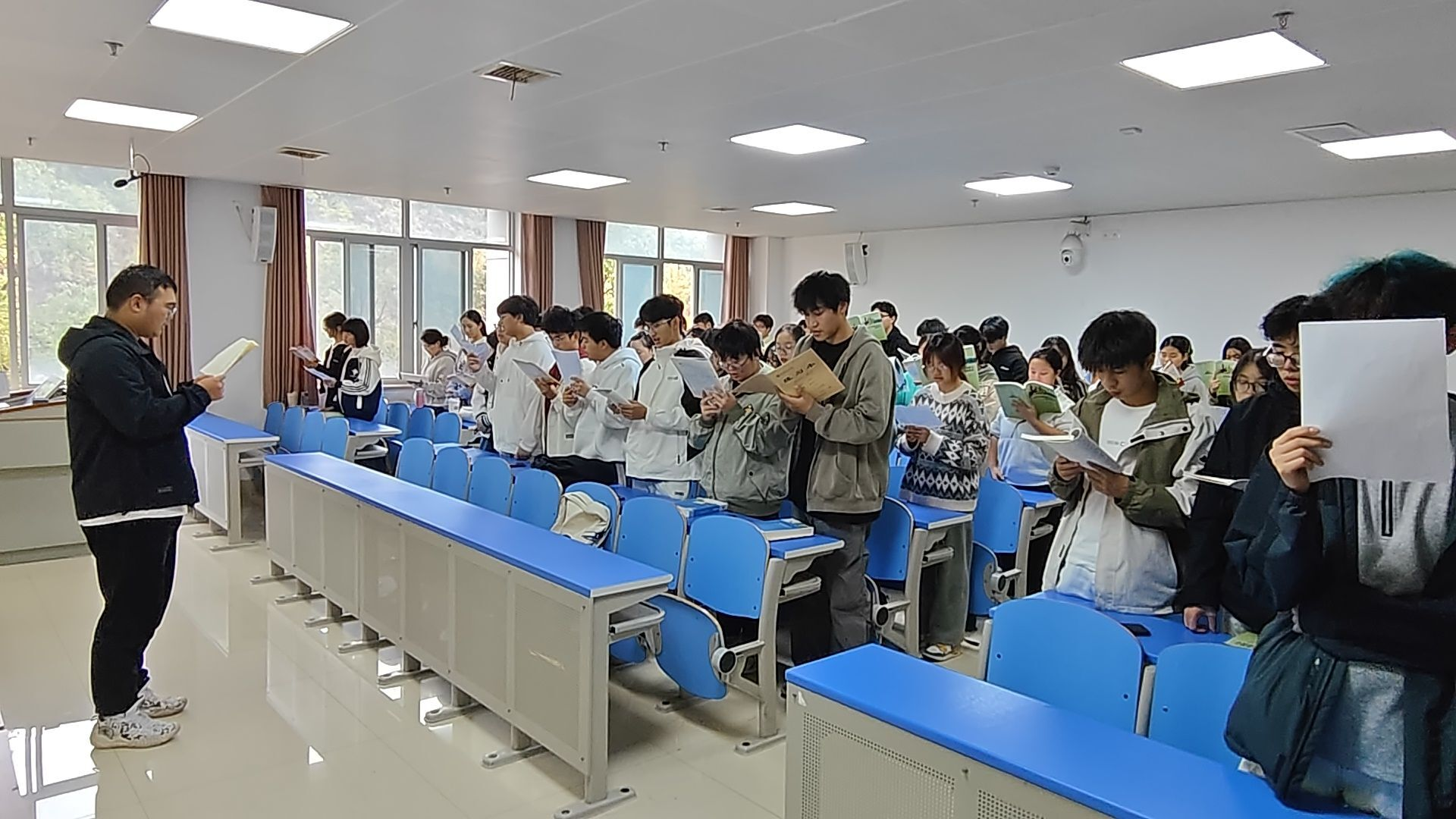 金秋的阳光洒满庄严的天安门广场,历史的时针回拨到那震撼人心的时刻。2025年10月30日,在团支书与班长的带领下,化工学院各班开展了课前三分钟的爱国朗诵活动。