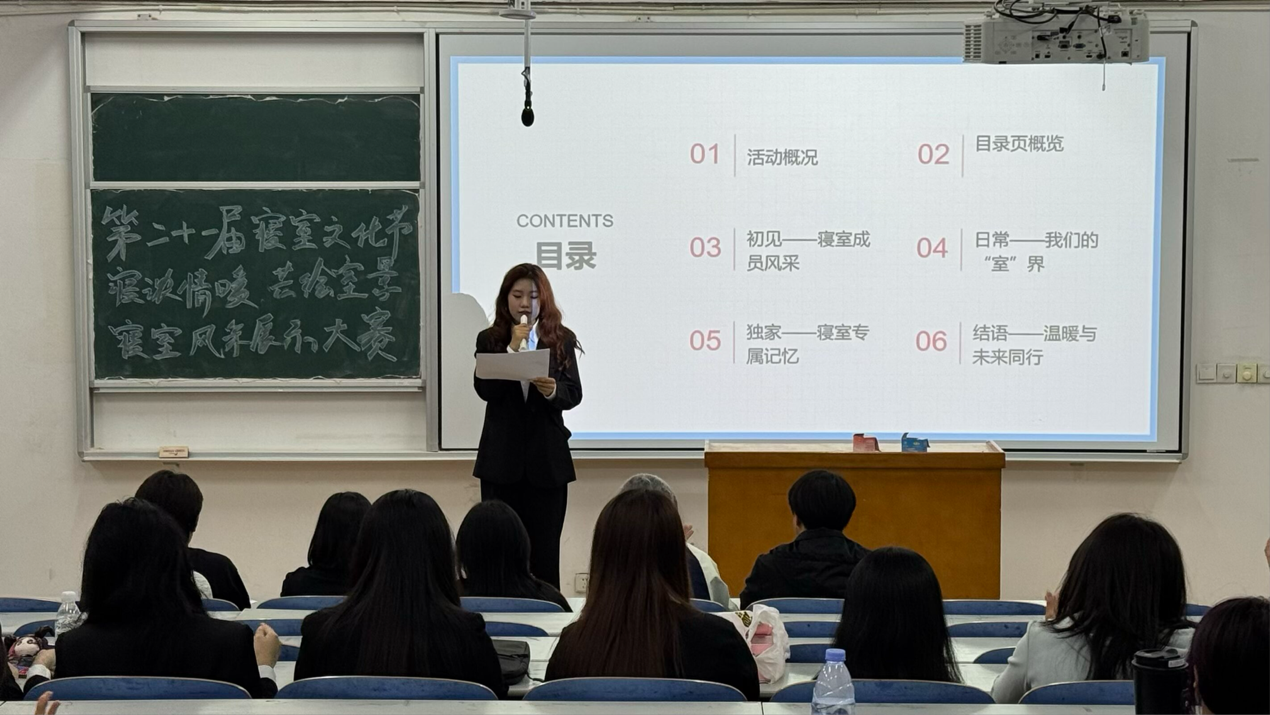 大家通过从寝室的全貌、准则,个人特色、才艺等方面全面的展示了自己寝室的独特风采与寝室氛围。大家身着正装,并且制作了精美的ppt穿插着精心制作的图片与视频,可见对于本次活动的重视。