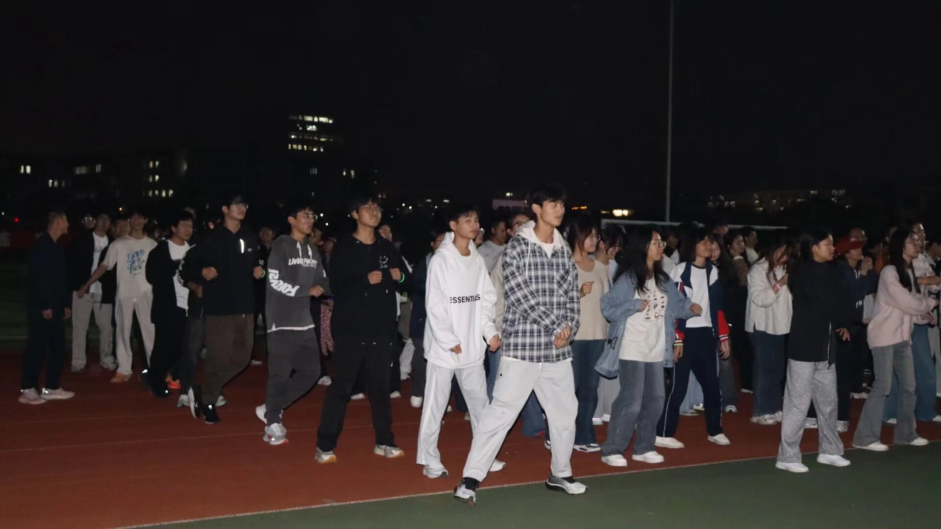 随着一声清脆的发令提示,1.2公里的夜跑征程正式开启。新生们或结伴而行、相互鼓劲,或稳步向前、挑战自我。跑道上,一个个年轻的身影伴着音乐迎着晚风奔跑,荧光手环在夜色中划出灵动的弧线,成为校园里一道亮丽的风景线。