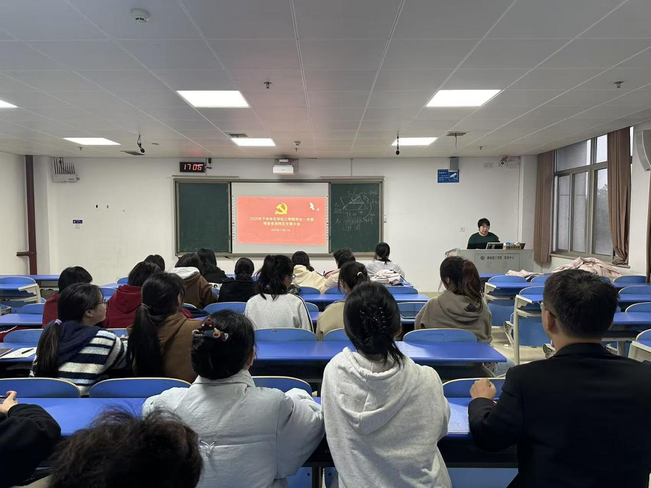 2025年11月11日下午,化学化工学院学生第一、第二及研究生党支部分别召开支部大会,审议接收新党员及预备党员转正事宜。各支部书记贺青、段伟豪、王雨晴分别主持会议,全体支部党员及相关发展对象参加会议。