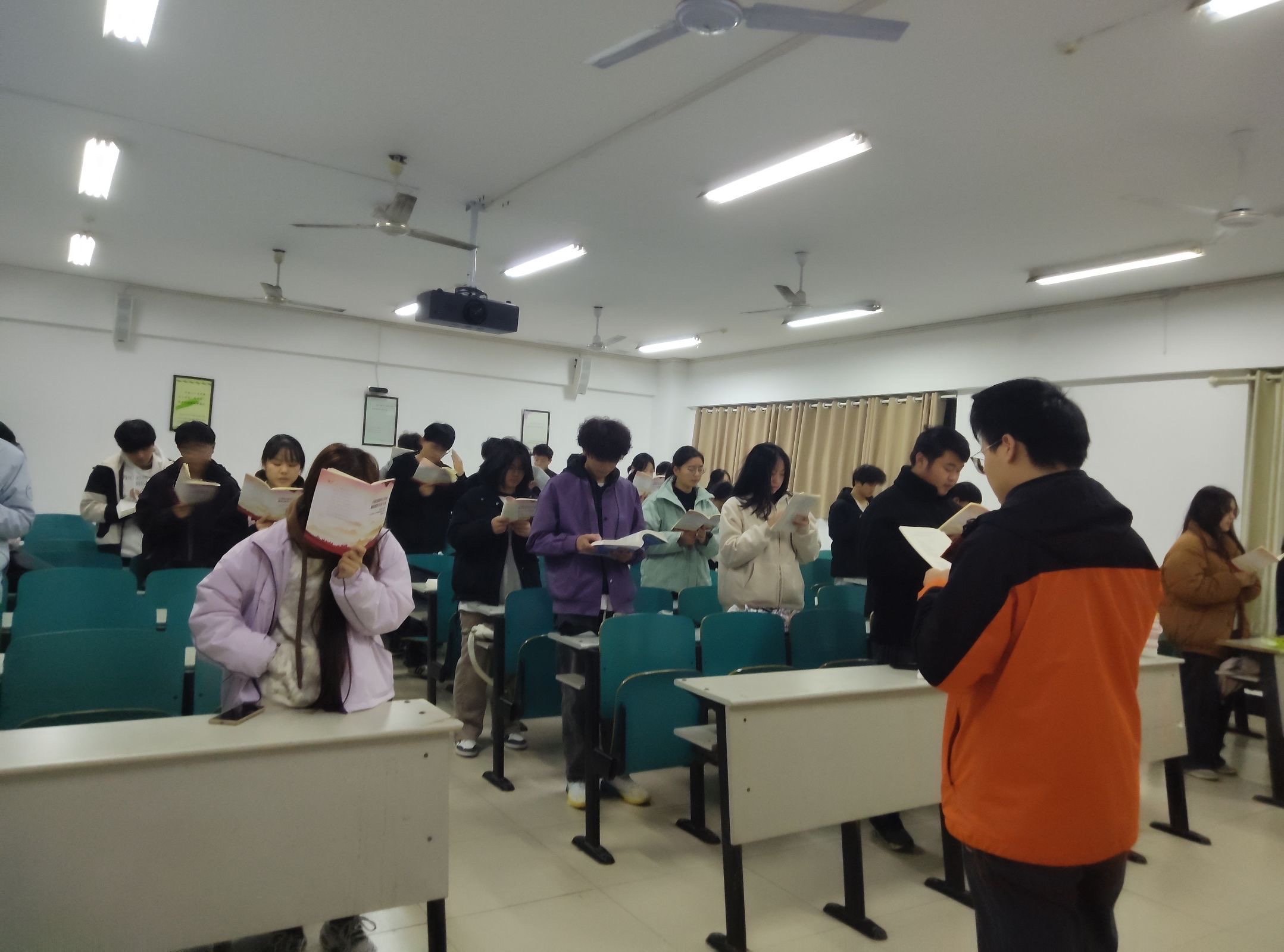 每日三分钟的坚持,早已让爱国朗诵成为学子们的“课前必修课”。不同于刻板的理论宣讲,这种沉浸式的诵读让爱国主义教育更接地气。同学们在反复品读中读懂祖国的厚重与伟大,在集体共鸣中坚定“强国有我”的信念。这不仅是文学的熏陶,更是精神的洗礼,让化学化工学子在专业学习之余,始终牢记青年使命,将对祖国的热爱转化为钻研学问、勇攀高峰的动力。