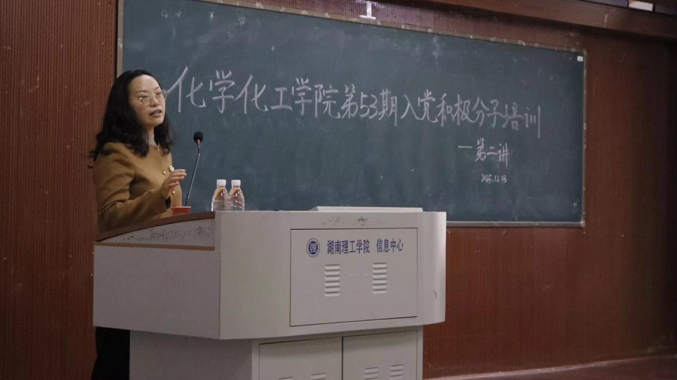 2025年12月3日晚,化学化工学院在6号教学楼学术报告厅顺利举办第53期入党积极分子培训第二讲。本次党课由学院党委副书记陈涉主讲,第五十三期全体入党积极分子参加学习。