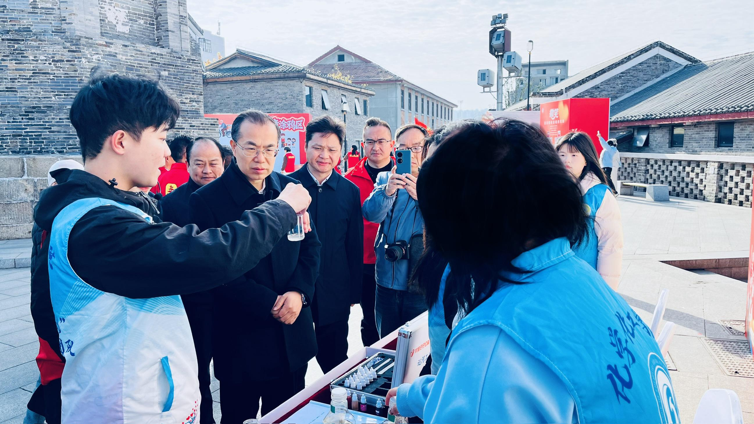 为迎接第40个国际志愿者日,12月3日,“汇聚志愿力量 共建美好社会”湖南省“12·5”国际志愿者日活动在岳阳市洞庭南路慈氏塔街区举行启动仪式。湖南理工学院化学化工学院“引领绿色,守望碧水”河小青志愿服务团队受邀为“守护好一江碧水”志愿服务项目活动展区进行水质检测活动。