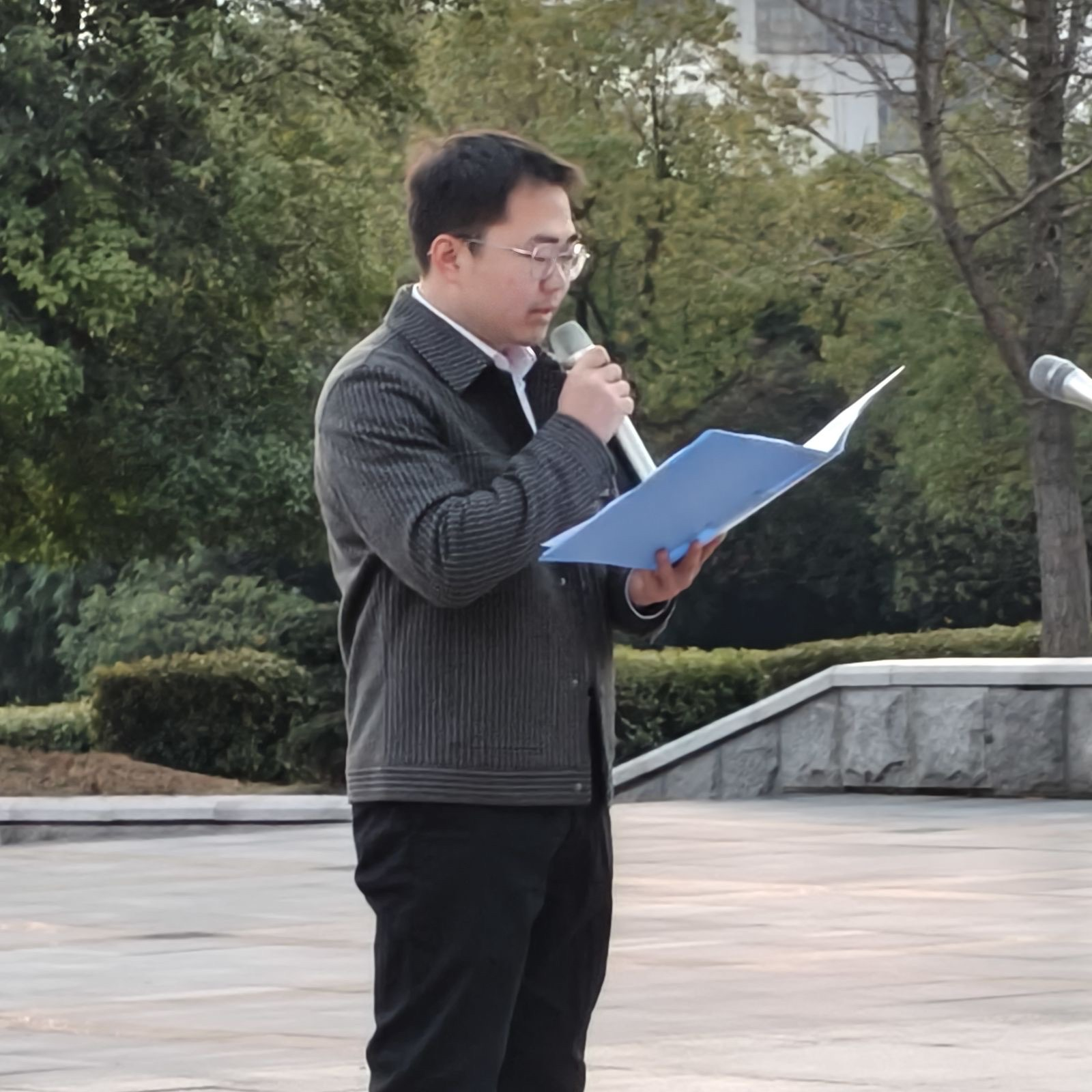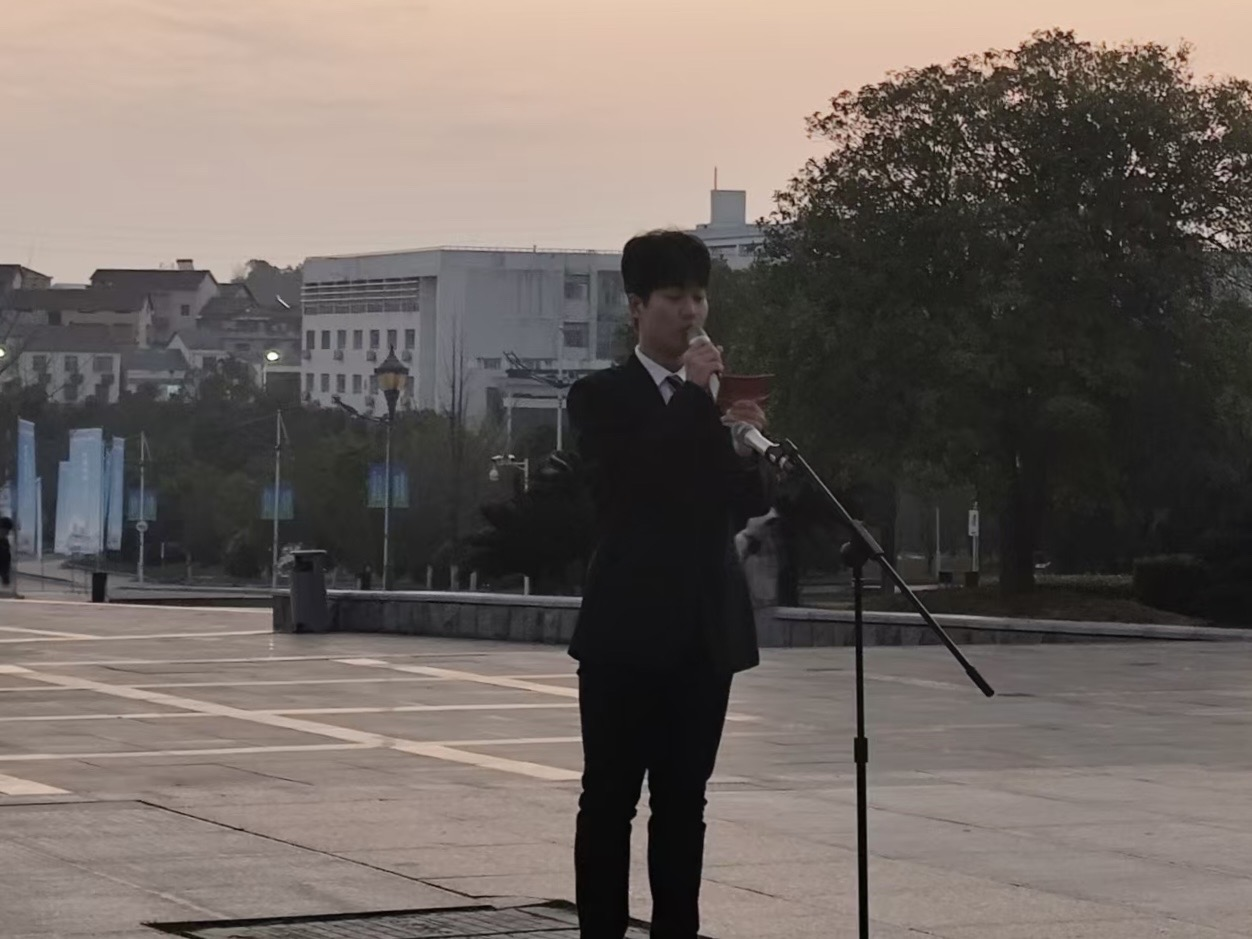 升旗仪式第三项,班主任代表陈洋羊老师讲话。他从“学长”与“教师”的双重身份出发,深情回顾自己在母校求学时受到国家与学校资助的成长经历,并由此对同学们给予了殷切期望:珍惜资源、志存高远、脚踏实地、不畏探索、心怀感恩。他勉励大家将个人奋斗融入时代洪流,在奉献中实现价值,真正书写无愧于自己、无愧于国家与时代的青春篇章。