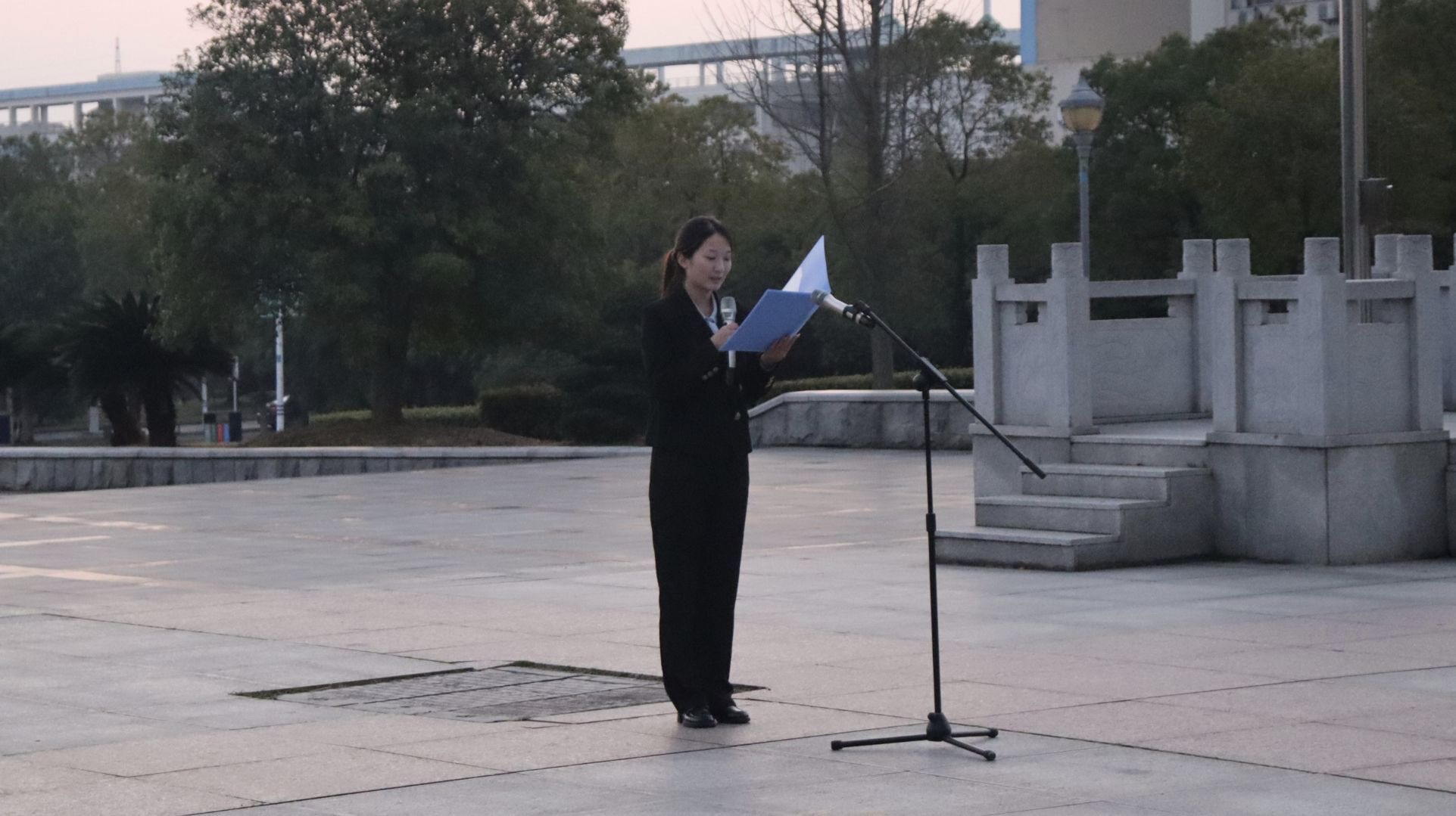 升旗仪式第二项,学生代表何圣莲在国旗下发表讲话。她分享了初入大学的新奇感悟与未来憧憬,言辞真挚而坚定,生动讲述了在湖南理工学院这片沃土上,在老师们和学长学姐的帮助下从迷茫到坚定、从认知到热爱的成长蜕变,号召全体新生以饱满的热情投入学习与生活,在青春的赛道上奋力奔跑,用实际行动践行新时代青年的责任与担当。