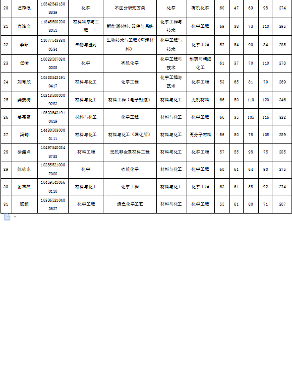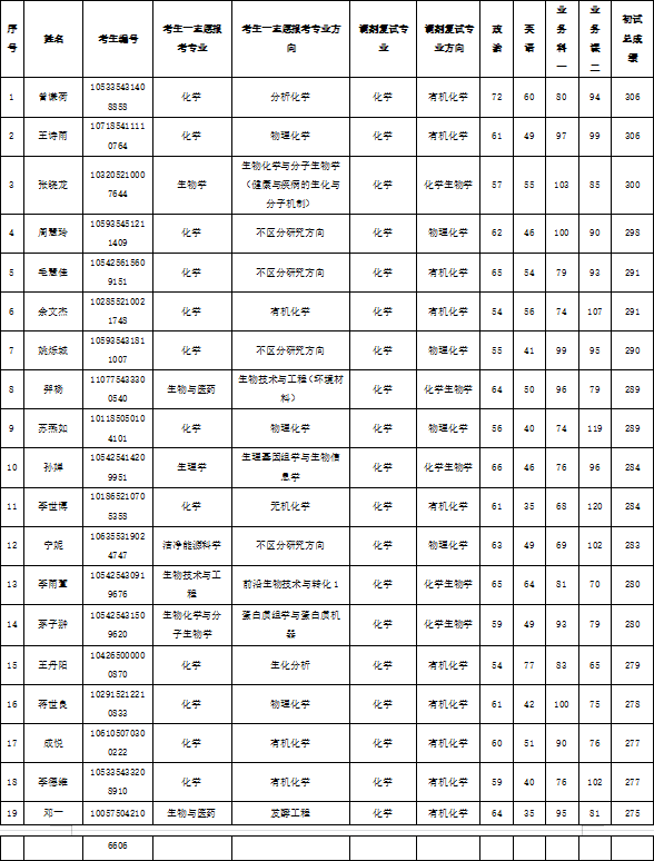 化学化工学院2025年硕士研究生招生复试名单(调剂第一批)