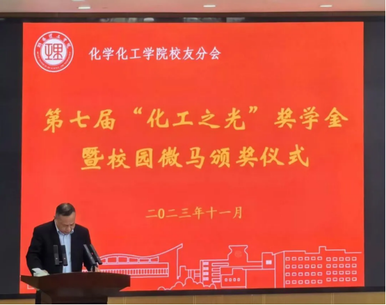 11月18日下午,化工学院校友分会第七届“化工之光”奖学金暨校园微马颁奖仪式于17号楼学术报告厅隆重举行。