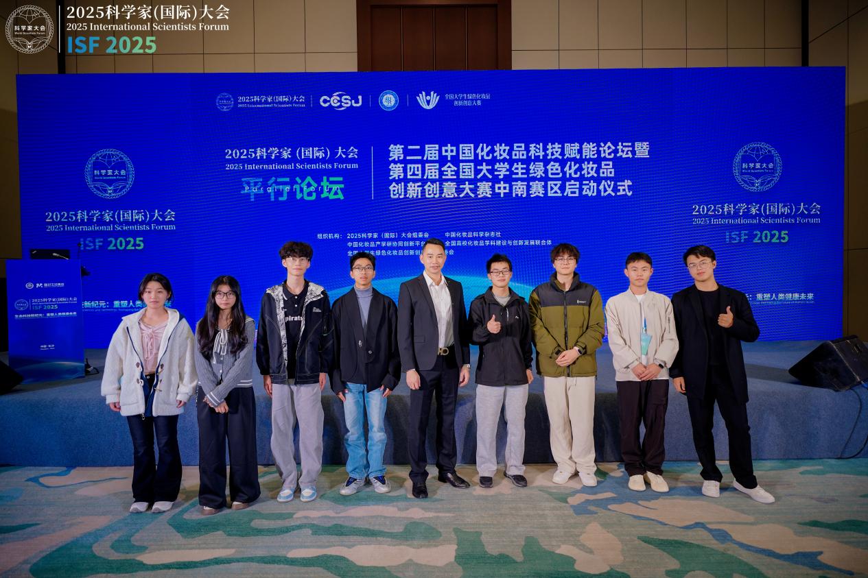 2025年11月7日至9日,2025科学家(国际)大会于长沙国际会议中心成功举办。我校师生代表团深度参与了大会主论坛“生命科技新纪元:重塑人类健康未来”及分论坛“第二届中国化妆品科技赋能论坛暨第四届全国大学生绿色化妆品创新创意大赛中南赛区启动仪式”,在与全球顶尖学者及行业领袖的交流中拓展了学术视野,汲取了前沿智慧,收获丰硕。
