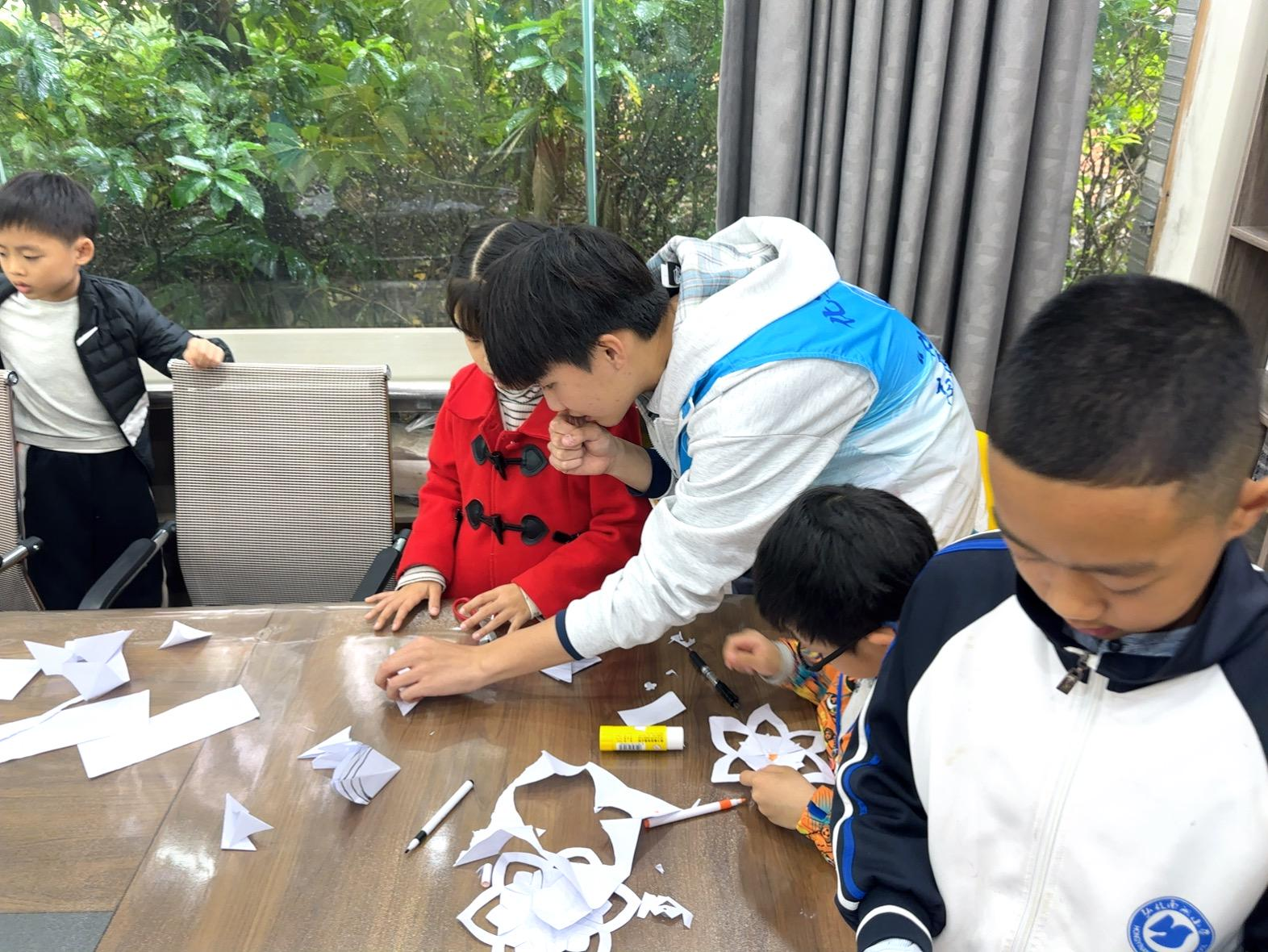 文化科普之后,立体雪花剪纸的手工活动正式开始。志愿者耐心指导孩子们折叠、剪裁,一张张彩纸在小手中逐渐变成精美的立体雪花,现场充满欢声笑语。在剪纸过程中,孩子们开始对立冬有了具象化的认识。