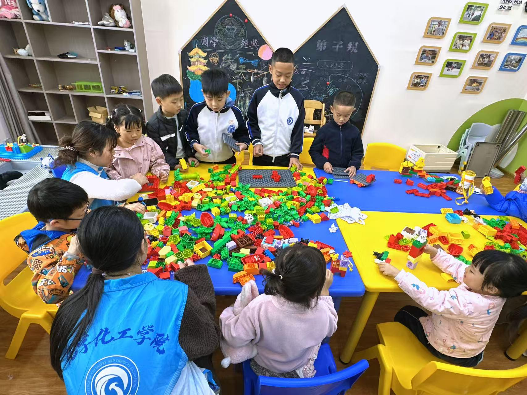随着孩子们手中亮出一朵朵雪花剪纸,手工活动随即落下帷幕。而为进一步锻炼并加强孩子们的动手能力,志愿者带领孩子们开始了乐高拼搭活动。在孩子们的巧手之下,小小积木被拼搭成了像“移动房车”、“乐高小火车”等富有创意和童真的作品。
