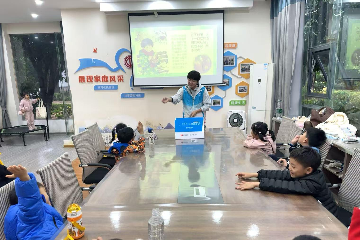 活动拉开序幕,志愿者用通俗易懂的语言为孩子们讲解立冬的节气内涵,从”立冬”作为冬季起始的天文意义,到“万物收藏,规避寒凉”的自然规律,层层递进地引导孩子们认识节气变化与身体健康的关联,在一定程度上帮助孩子们适应时节,守护安康。在介绍立冬习俗与立冬美食的环节中,志愿者详细讲解祭祖活动、“寒冬计数”等立冬小知识,充分展现了立冬的节气意义,让孩子们在了解立冬文化的同时,熟悉冬季饮食知识。