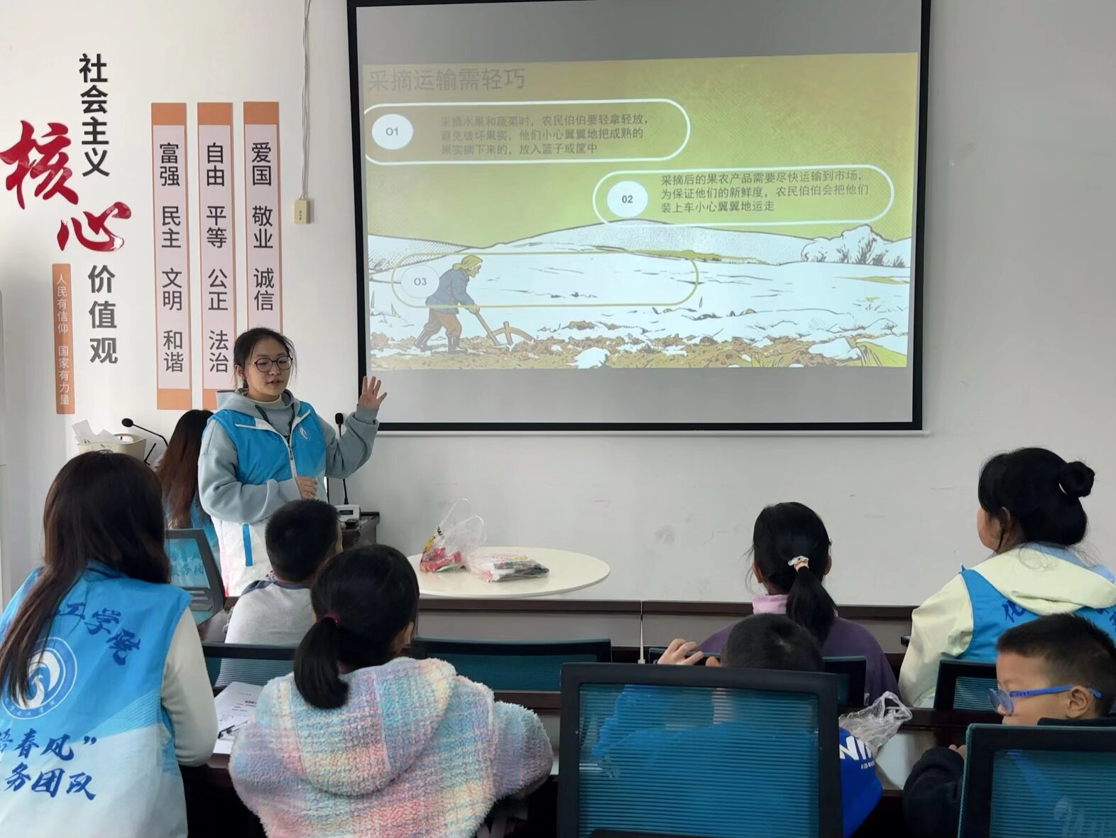 2025年11月30日,湖南理工学院“化语春风”志愿服务团队走进学院路社区,开展以“暖冬童心助农·珍惜粮食爱劳动”为主题的宣教活动。本次活动皆在让孩子们认识冬日农作物与粮食种植、运输流程,树立惜粮理念,同时掌握环保实用的助农小技能。