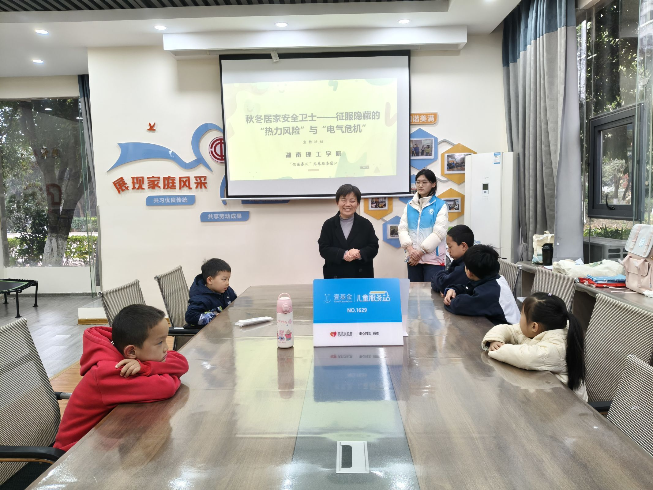 为提高孩子们居家的用电、用热安全意识,2025年12月7日,湖南理工学院化学化工学院“化语春风”志愿服务团队走进南湖花园,开展秋冬居家安全卫士主题宣教活动,帮助孩子们学习用电、用热安全知识。