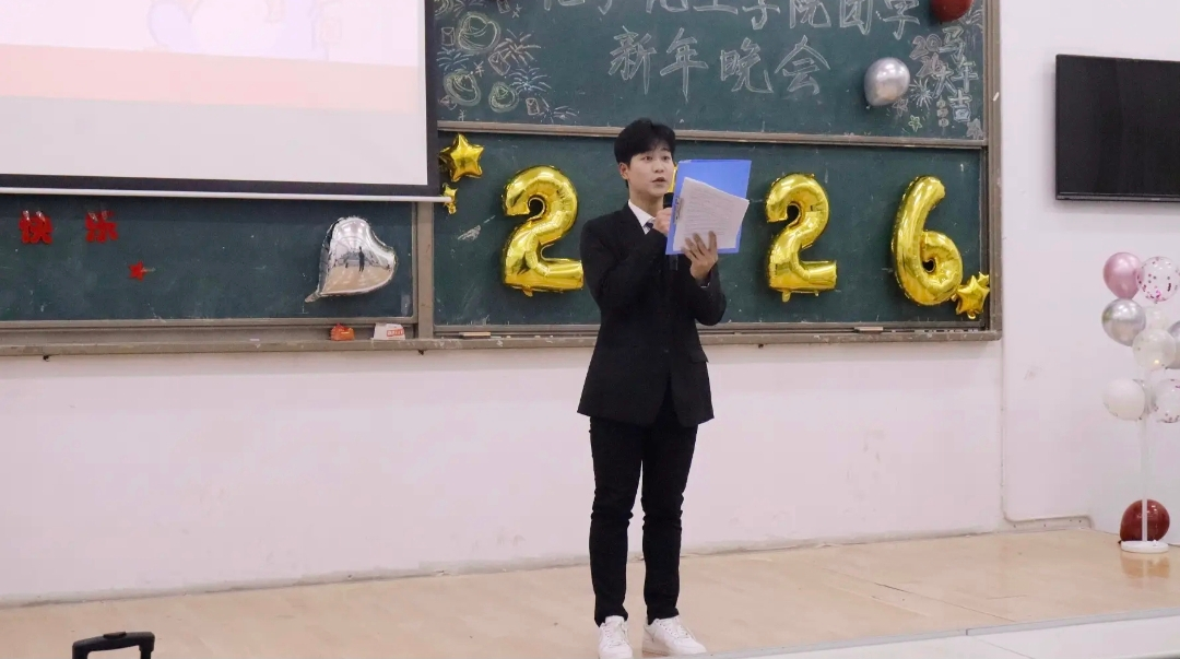 时序更替,华章日新。2025年12月22日19时,化学化工学院团学2026新年晚会如期启幕。本次晚会由赵紫斌主持,团委书记陈洋羊、团委副书记曹尹馨,以及团学各部门干部、干事齐聚一堂,共赴这场辞旧迎新的青春盛宴。