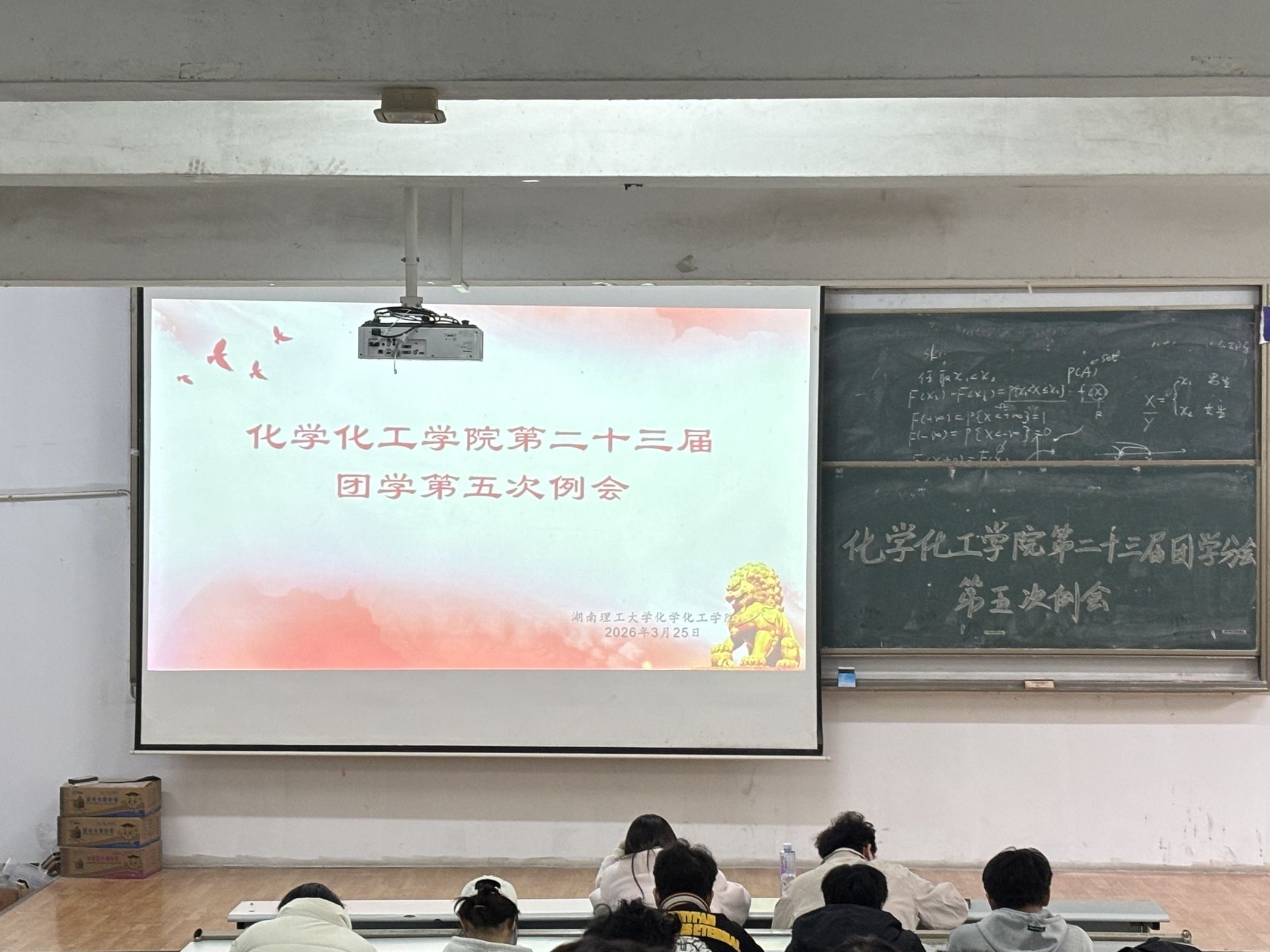 2026年3月25日12时,化学化工学院第二十三届团学第五次例会于7栋7T1教室召开。会议由团学主席黄惠心主持,团委书记陈洋羊、团委副书记曹尹馨及各部门干部、干事与会。会议有序开展各部门干事述职、工作总结与工作部署等环节,为后续团学工作的推进指明了方向。